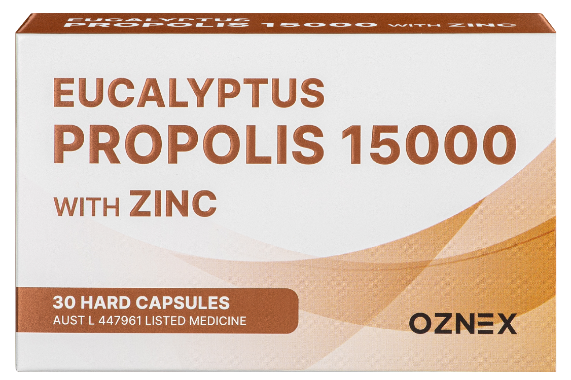 THE OZNEX ECALYPTUS PROPOLIS 15000 WITH ZINC is a concentrated source of antioxidants, carefully formulated to support and maintain immune system. It utilises the potent properties of bee-derived resin that reduce symptoms of common colds and flu. This formulation helps maintain body metabolism promoting general health and wellbeing.